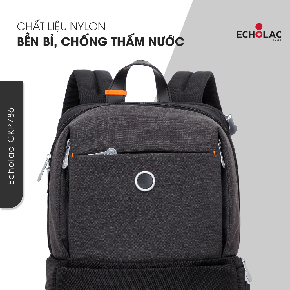 Balo laptop Echolac CKP786 được làm từ Nylon cao cấp, với khả năng chống thấm nước tối ưu. Đồng thời, chất liệu này cũng vượt trội với độ bền bỉ và khả năng bền màu, ít bị bám bụi và rất dễ dàng lau chùi, vệ sinh.
