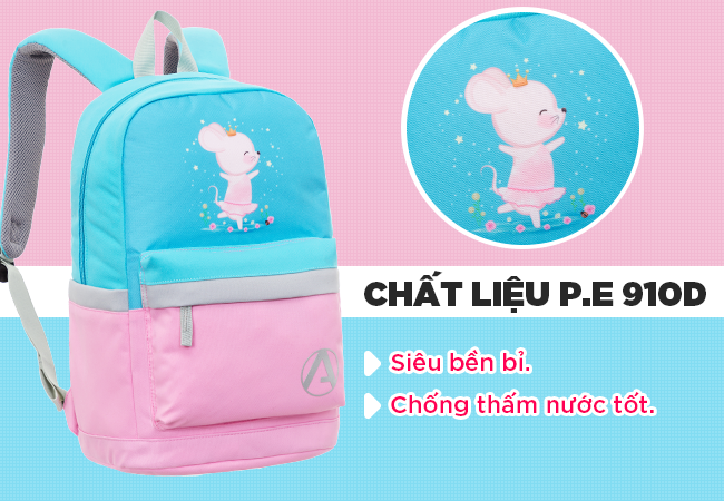 Lấy cảm hứng từ những con vật đáng yêu ngoài tự nhiên, Aber Mabel AB5186 thật nổi bật và không kém phần năng động, màu sắc của sản phẩm đa dạng giúp bạn có nhiều sự lựa chọn hơn cho bản thân của mình. Bạn có thể sử dụng balo Aber Mabel AB5186 để đi học, đi chơi. Balo Aber Mabel AB5186 sử dụng chất liệu P.E 910D siêu bền bỉ, chống thấm nước tốt nên bạn hoàn toàn yên tâm sử dụng chúng dưới thời tiết nắng mưa mà không lo bị hư hại đồ đạc bên trong.