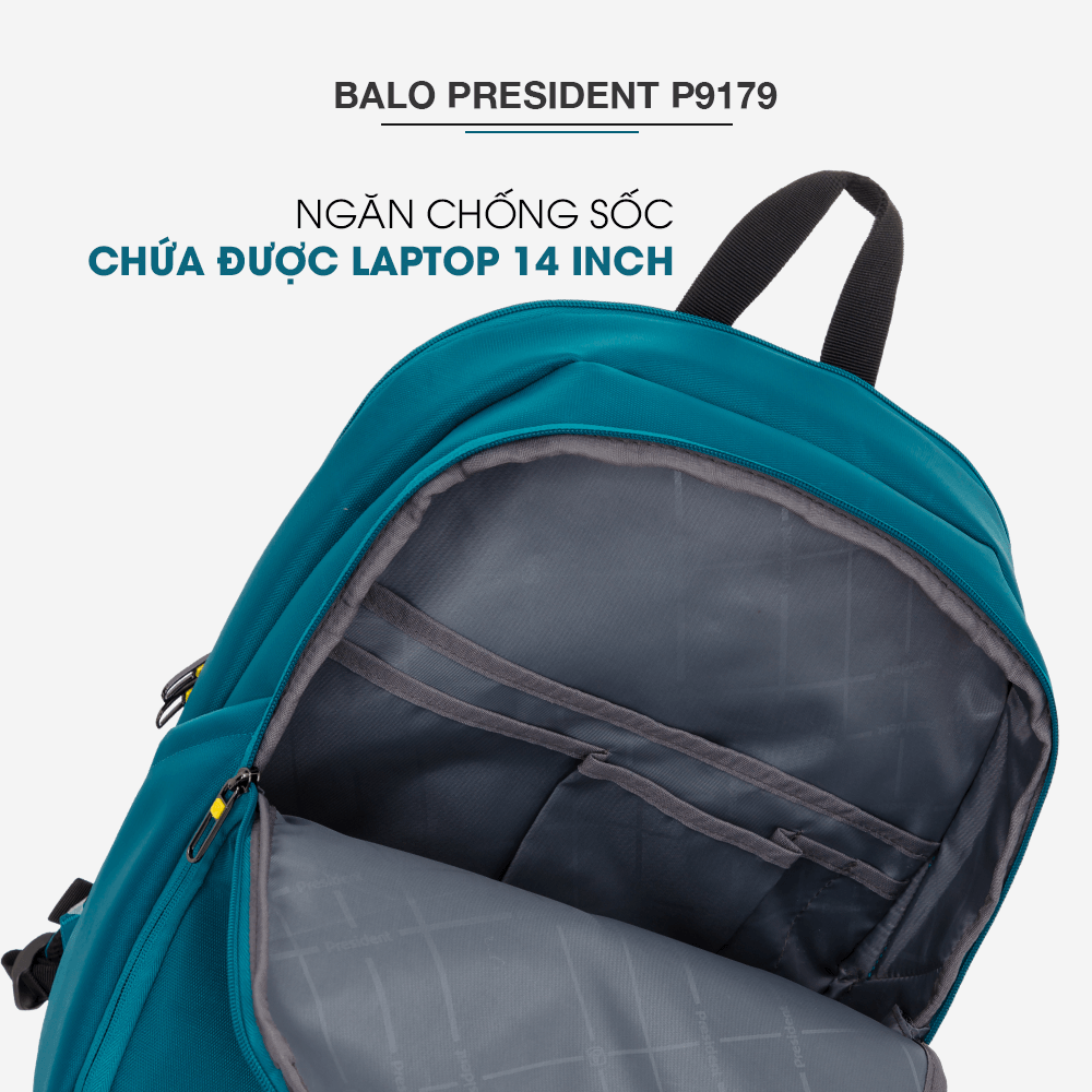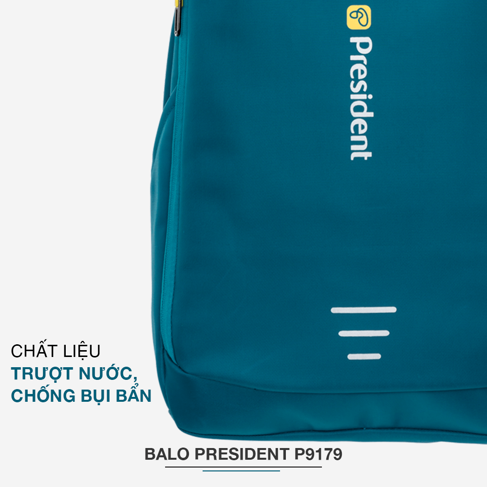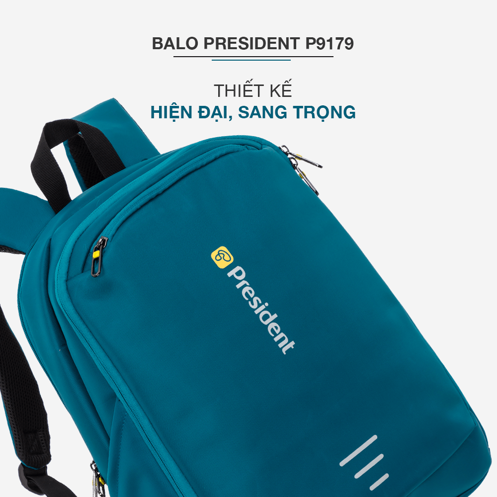 Balo President P9179 có thiết kế thông minh, thon gọn, tối ưu sức chứa và nhiều ngăn chứa tiện lợi phân loại đồ vật mang theo. Có ngăn chống sốc rộng có thể chứa được laptop đến 14 inch. Tặng kèm bao trùm balo chất lượng cùng thương hiệu President làm tăng tuổi thọ của sản phẩm. Đồng thời, phần phía sau balo có đai cố định tiện lợi, có thể kết hợp cùng vali để tạo nên combo hoàn hảo cho một chuyến du lịch dài ngày hơn.
