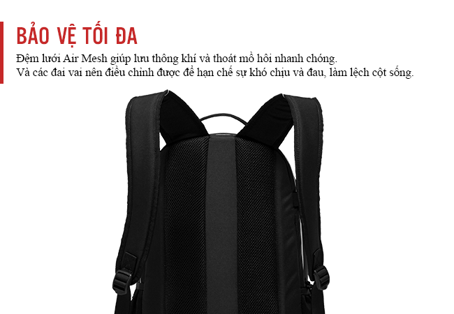 Có lớp đệm lưng nó sẽ giúp ngăn cản các vật thể sắc nhọn đâm vào lưng. Đệm lưới Air Mesh giúp lưu thông khí và thoát mồ hôi nhanh chóng. Và các đai vai nên điều chỉnh được để các cặp phù hợp với cơ thể. Dây đeo quá lỏng lẻo có thể làm cho balo trĩu xuống gây khó chịu và đau, làm lệch cột sống.