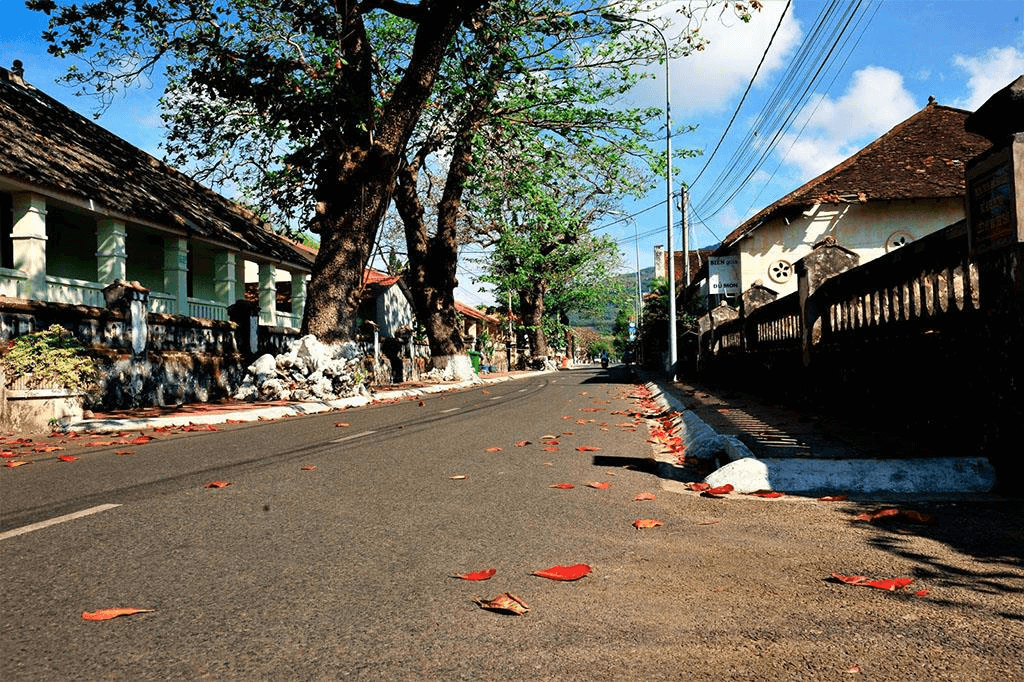 Côn Đảo trời xanh, mây trắng và sóng nước Côn Đảo vào những ngày đầu tháng 4 vô cùng nền nã. Ngoài ra đây là mùa lá bàng rụng ở Côn Đảo, với những hàng cây rụng lá xào xạc tung bay khẳng khiu phảng phất buồn. Đặc biệt ở khu vực bãi Đầm Trâu, những tán cây lớn gần như rụng hết lá, chỉ còn lác đác vài chiếc lá bàng màu đỏ úa chờ chực rơi để nhường chỗ cho những chồi non.