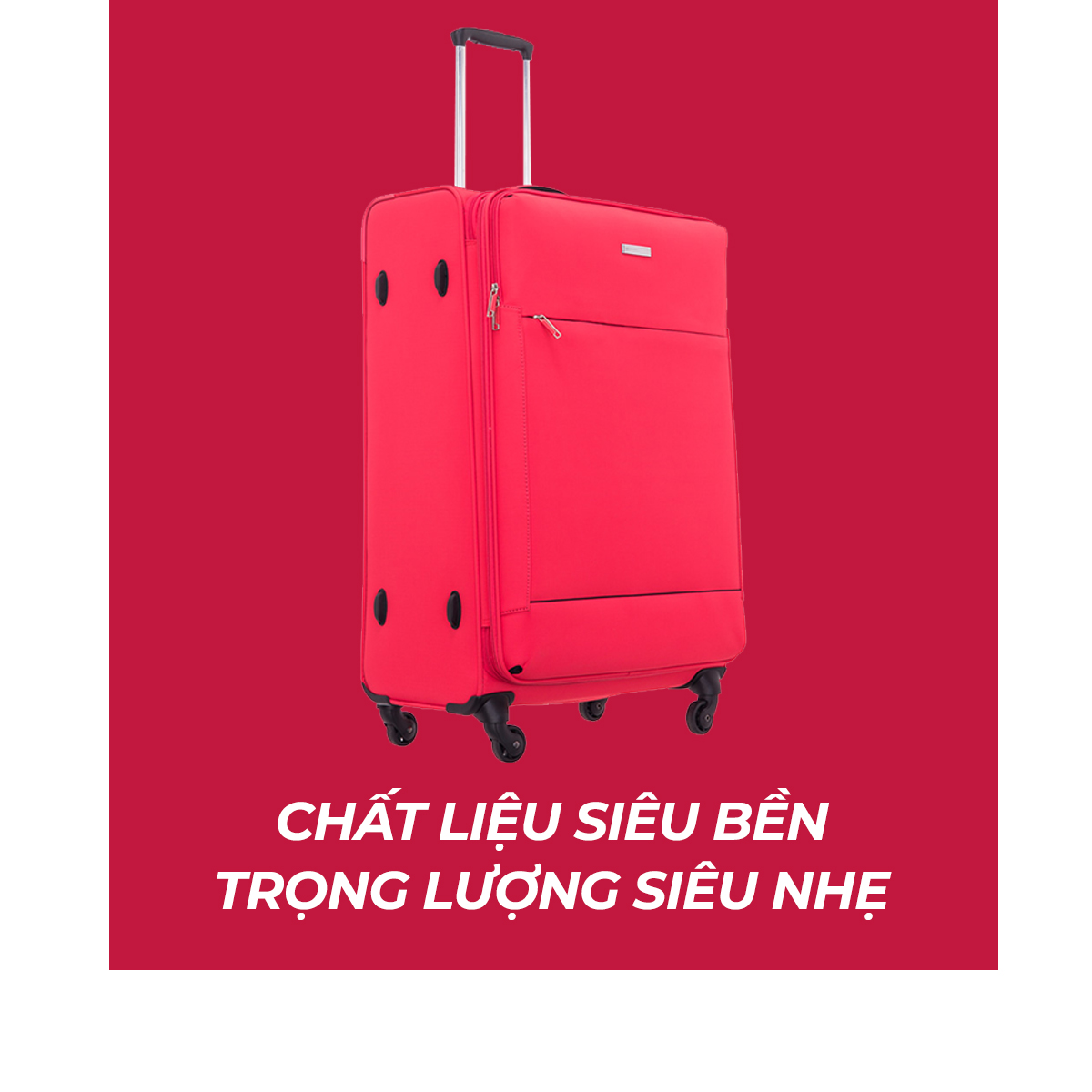 Sản phẩm CT563 không chỉ là một trong những mẫu vali vải hiếm hoi có trọng lượng chỉ 1.8kg (size 20) bạn hoàn toàn có thể xách tay khi lên máy bay. Điều tạo nên ưu điểm này chính là ở chất liệu PolyEster (P.E) hay còn gọi là vải dù, đây là chất liệu mang tính ứng dụng rất cao trong các thiết kế vải bởi đặc tính nhẹ, bền, chống thấm nước, chống bị co rút hay kéo giãn khi giặt, dễ dàng vệ sinh, thoáng khí, không bị nấm mốc. Nếu bạn lo lắng vì vali kéo nhựa quá cồng kềnh, nặng nề hay lo sợ vali bị bể, vỡ, trầy xước do va đập,... với CT563 bạn sẽ không còn lo ngại về những điều trên nữa.