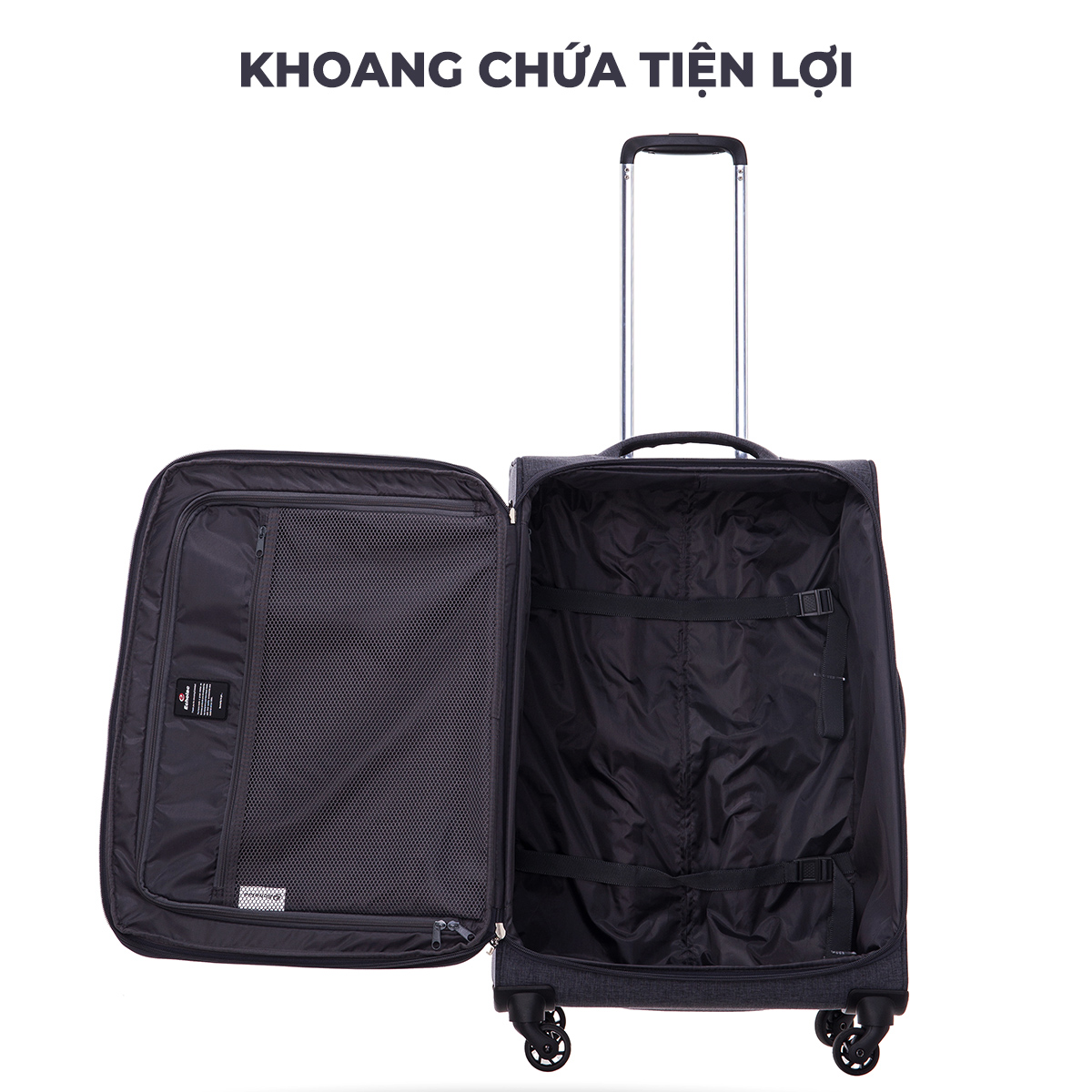 Sản phẩm sở hữu thiết kế ngăn chứa tiện lợi với 1 ngăn chính rộng rãi và 3 ngăn phụ kiện được phân cách để dễ dàng phân phối hành lý, ngoài ra chất liệu vải của khoang chứa được may từ vải PE giúp hạn chế sự thấm nước và gây ẩm mốc cho hành lý của bạn.
