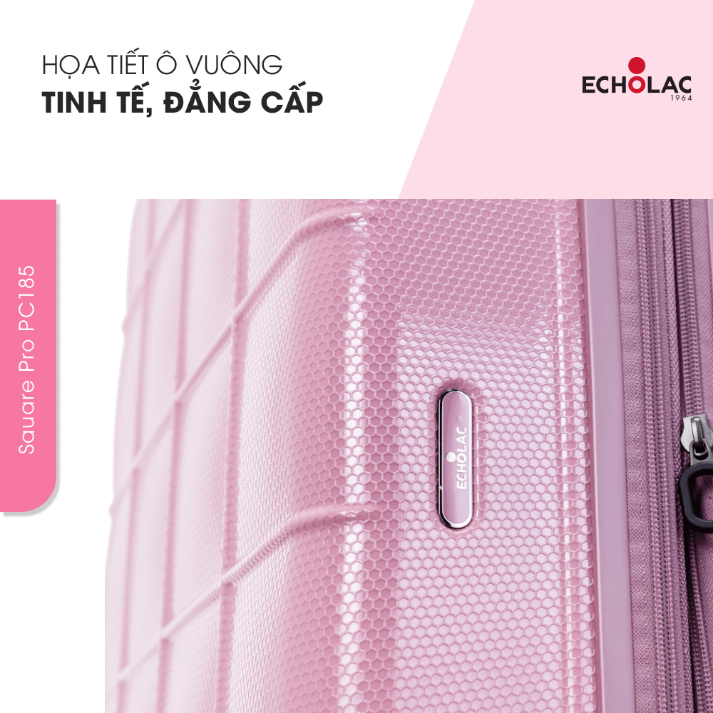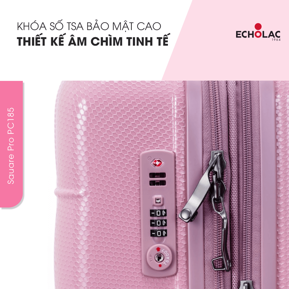 Đồng thời, chiếc vali du lịch PC185 sở hữu bề mặt vân nhám tổ ong độc quyền chế tác của ECHOLAC mang lại hiệu ứng sáng bóng “Kim Cương” cho vali thật sang trọng và chống trầy xước tối ưu.