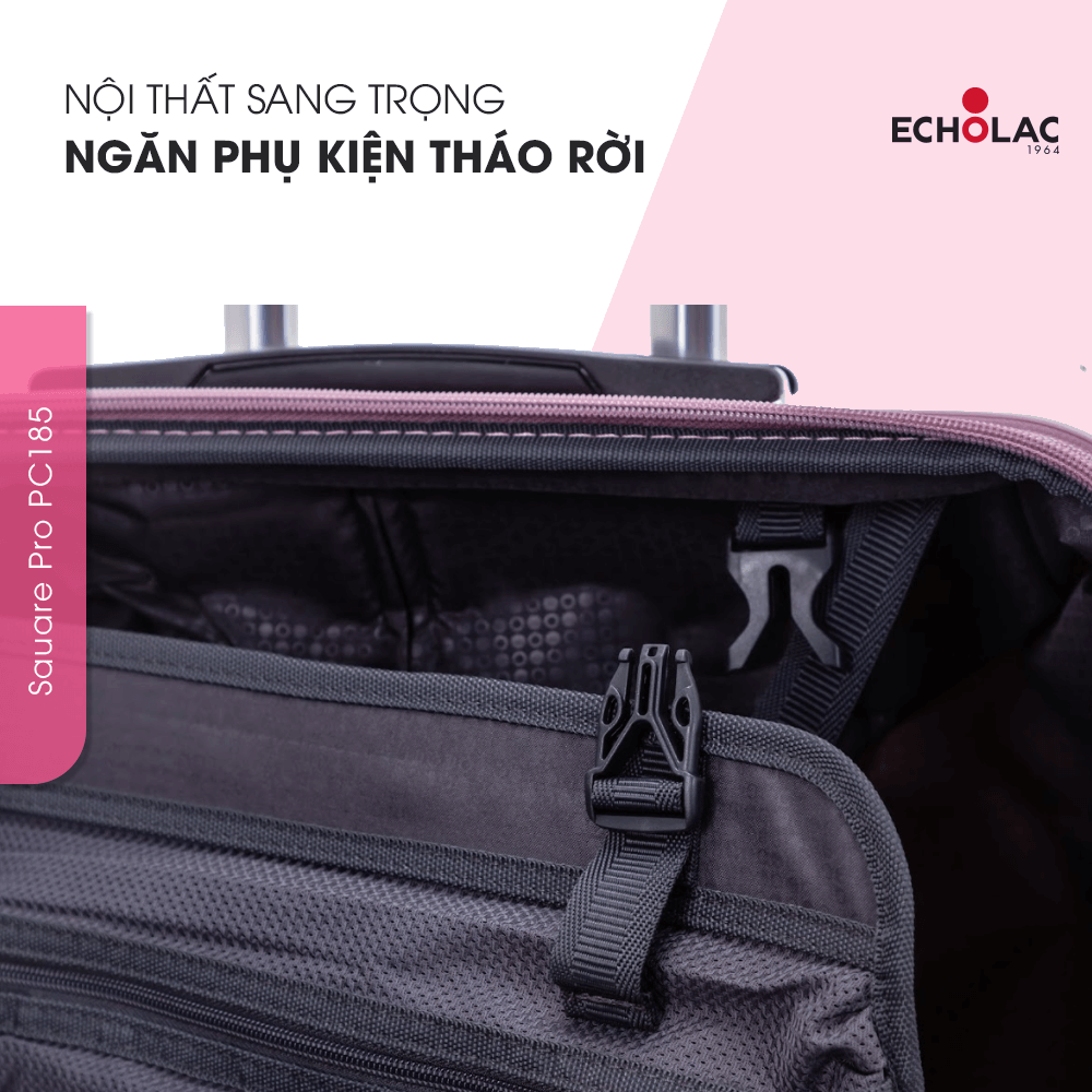 Sở hữu họa tiết ô vuông in chìm mang tính thẩm mỹ cao cùng sắc màu thời thượng, sản phẩm Square Pro PC185 được pha trộn hoàn hảo giữa phong cách du lịch mạnh mẽ phóng khoáng và công nghệ hiện đại giúp hành trình của bạn trở nên hoàn hảo hơn rất nhiều. Bên cạnh đó, PC185 được xếp vào dòng “Smart Luggage” bởi các ô vuông có tác dụng phân tán tác động rất lớn, tăng cường khả năng chịu lực của sản phẩm kết hợp vân nhám tổ ong độc đáo chống trầy