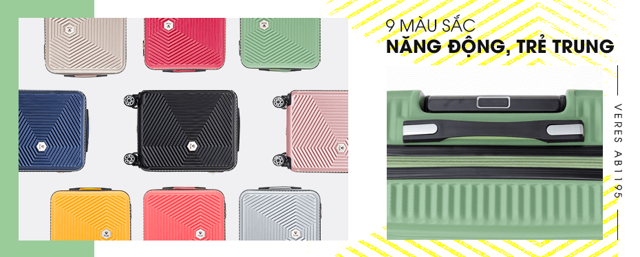 Màu sắc trong thiết kế của vali Veres AB1195 đa dạng hơn các bộ sưu tập khác của Aber. Tổng có đến 9 màu khác nhau, từ tươi sáng như mùa xuân đến các màu tone tối trầm tính dễ sử dụng.